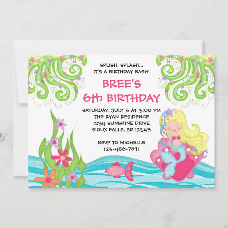 Blonde Mermaid Birthday Invitations Zazzle