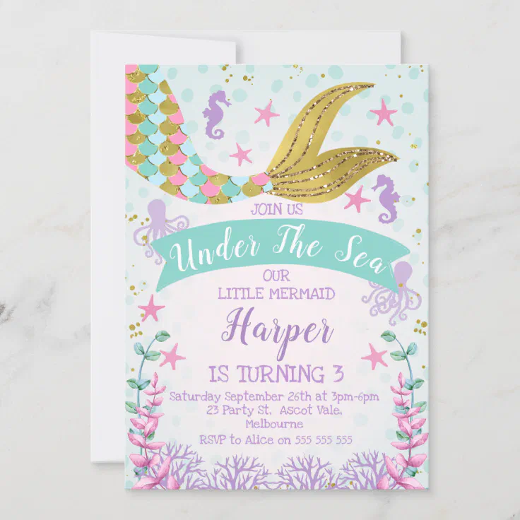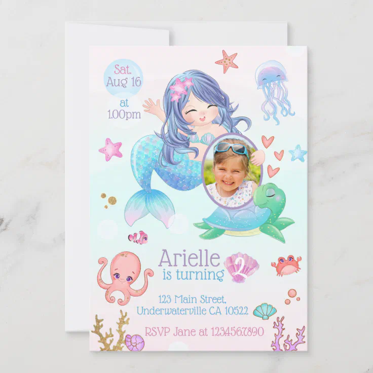 Cute Mermaid Under the Sea Birthday Party Invitation. Sep 7 2022 - FREE Design Tool on Zazzle. Personalize it with photos text or purchase as is.