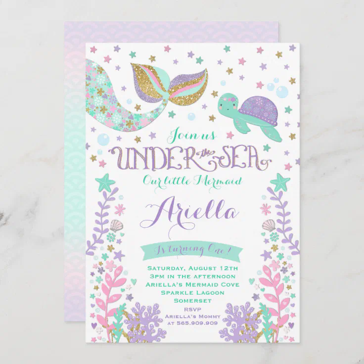 Mermaid And Turtle Birthday Invitation Under Sea Zazzle