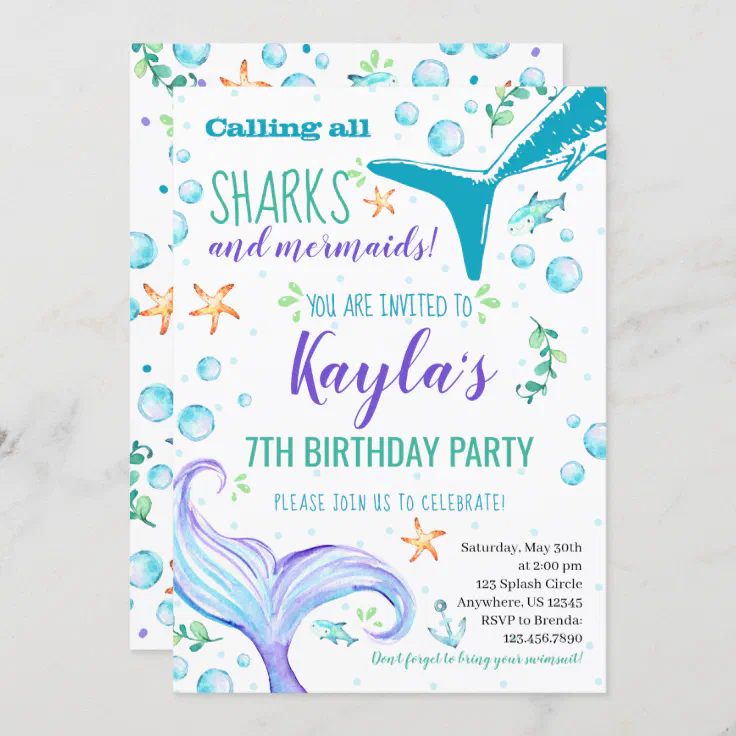 Sharks And Mermaids Birthday Party Invitation Zazzle